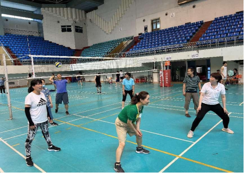 学院党委书记曲洪刚发言,感谢校工会对学院工会工作的支持,感谢学院工会对学院发展做出的努力,在“喜迎二十大 奋进新征程”为主题的一年中,希望各位老师继续努力奋斗,把我们学院建设的更好。在软式排球比赛中,教师们团结协作,各自发挥出精湛的专业水平,赛场上加油鼓励之声此起彼伏。羽毛球赛场上,男双、混双激烈对抗,选手们汗如雨下,球技精湛,配合默契,精彩不断。